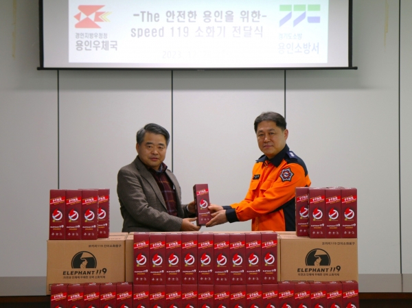 용인소방서 사랑의 소화기 ‘동행 프로젝트: 스피드119’ 용인우체국에 소화기 전달