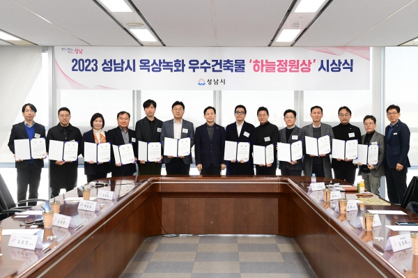 ‘2023 성남시 하늘정원상’은 도시 열섬현상 완화, 도시경관 향상, 냉난방 에너지 절감 및 시민 휴식 공간 제공 등의 효과를 실현하고 도시 품격 향상에 기여한 옥상녹화 우수건축물을 선정하고 시상하기 위한 공모다.