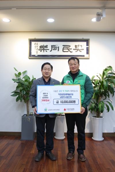 [금요저널] 남양주시는 직장공장새마을운동남양주시협의회가 27일 시장집무실에서 지역 내 어려운 이웃을 돕기 위한 후원금 1,000만원을 남양주시복지재단에 전달했다고 밝혔다.