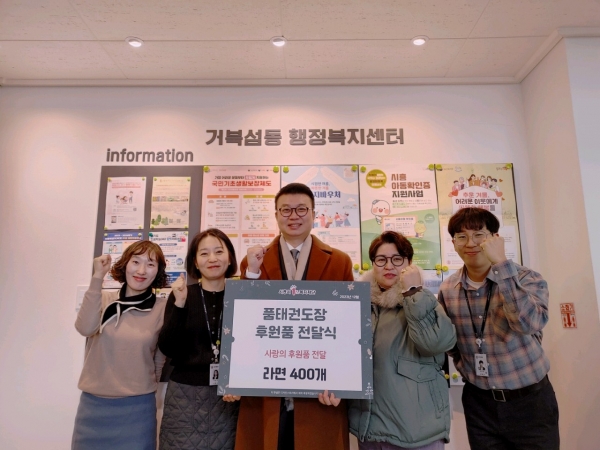 [금요저널] 거북섬동에 있는 품태권도장이 지난 27일 아이들의 소중한 마음이 담긴 라면 400개를 후원해 사랑의 나눔을 실천했다.