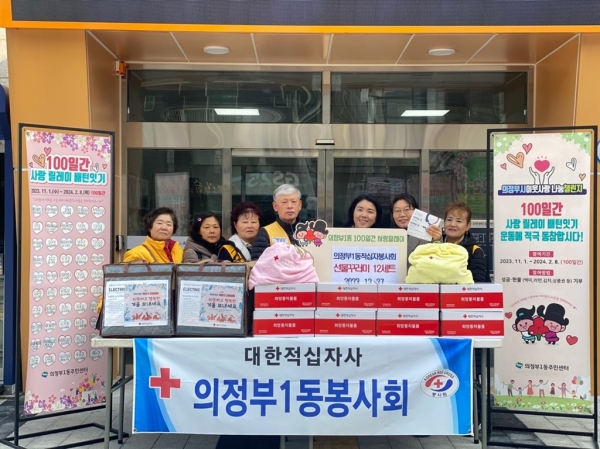 [금요저널] 의정부시 의정부1동주민센터는 12월 27일 대한적십자사 의정부1동 봉사회가 어려운 이웃을 위해 식료품, 전기요, 백미·잡곡 등으로 구성된 선물꾸러미를 전달했다고 밝혔다.