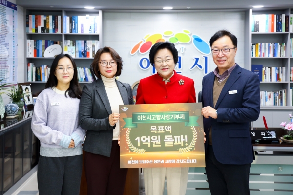 김 시장은 “전국에서 이천시를 응원하는 분들의 정성이 모여 목표액 달성이라는 성과를 낼 수 있었다”며 “보내주신 애정과 성원에 깊이 감사드리며 이천 발전을 염원하는 기부자들의 성원에 보답하기 위해 답례품과 기금사업을 알차게 준비해 기금 운용에 만전을 다하겠다”고 말했다.