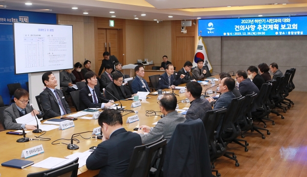 이번 보고회는 지난 9월부터 11월까지 25개 읍면동 주민을 대상으로 추진한 2023년 하반기 시민과의 대화에서 건의된 사항에 대해 부서별 조치 현황을 점검하고 향후 계획을 논의하기 위해 마련됐다.