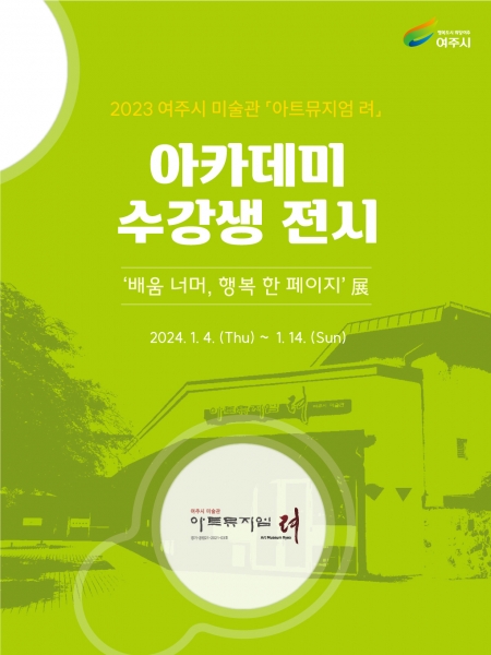 [금요저널] 여주시 미술관 ‘아트뮤지엄 려’에서는 2024년 1월 4일 ~ 1월 14일 기간 ‘아트뮤지엄 려’ 아카데미 수강생 전시 - ‘배움 너머, 행복 한 페이지’ 展을 개최한다.