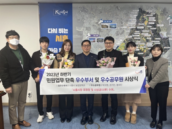 [금요저널] 시흥시는 2023년 하반기에 민원을 신속하게 처리해 행정 서비스에 대한 시민의 신뢰도와 만족도를 향상한 1개 우수 부서와 직원 3명을 선정했다고 지난 28일 밝혔다.