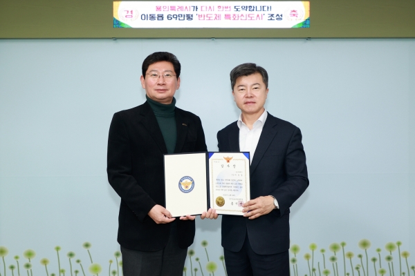 [금요저널] 이상일 용인특례시장이 시민 안전을 위해 '생활공동체 치안'을 강화한 노력을 인정받아 28일 경기남부경찰청으로부터 감사장을 받았다.