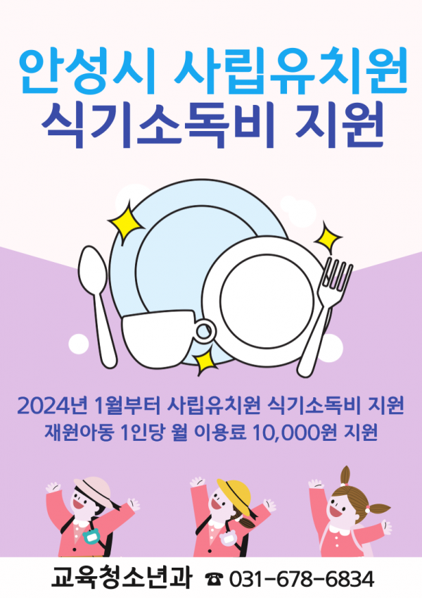 [금요저널] 안성시는 2024년 1월부터 사립유치원의 식기소독비를 지원한다고 밝혔다.
