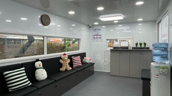 쉼터 내부에는 이동노동자의 편의와 휴식을 위한 냉·난방기, 냉온수기, 스마트폰 충전기, 와이파이 등이 갖춰져 있다.