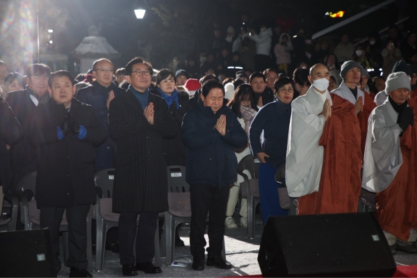 [금요저널] 주광덕 남양주시장은 지난해 12월 31일 진접읍에 소재한 대한불교조계종 제25교구 본사 봉선사에서 열린 2024년 갑진년의 희망찬 출발을 알리는 ‘제야의 종 타종식’에 참석했다.