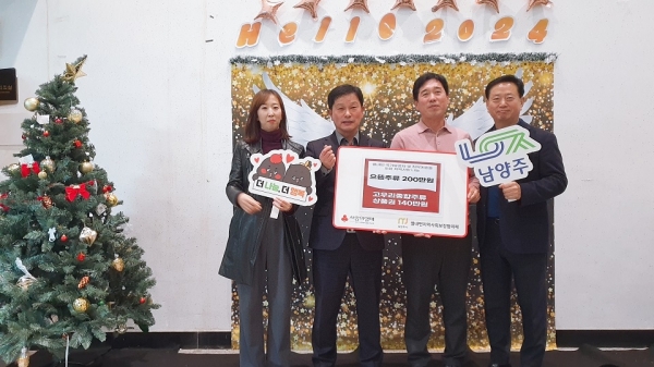[금요저널] 남양주시 별내면는 지난달 29일 별내면 으뜸주류·고우리종합주류에서 연말연시를 맞아 별내면 취약계층 및 국가유공자에게 전달해 달라며 후원금 200만원과 140만원 상당의 농협상품권을 기탁했다고 밝혔다.