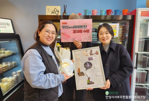 안성시서부무한돌봄네트워크팀 센터장 유성아는 “든든한 후원을 받아 많은 이웃들을 만날 수 있어서 기쁘다 오랜 시간 이어져 온 귀한 나눔을 통해 지역사회 곳곳에 빛과 소금이 되어주심에 감사드리는 마음을 담아 감사패를 전한다”고 말했다.