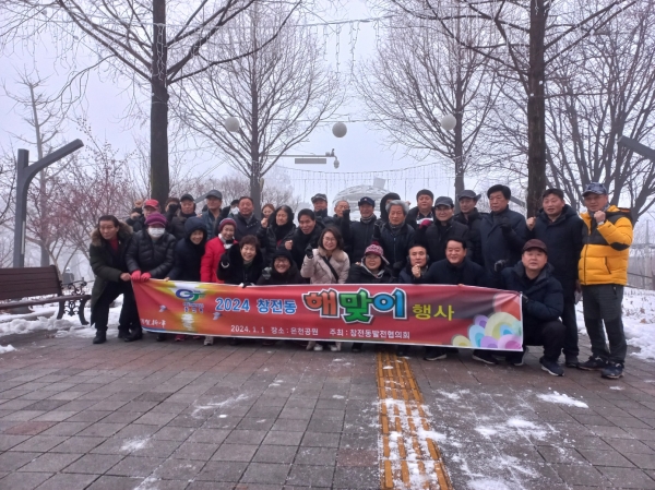 [금요저널] 창전동은 2024년 첫날인 1월 1일 온천공원 북카페 도서관 근처에서 새해 해맞이 행사를 가졌다고 밝혔다.