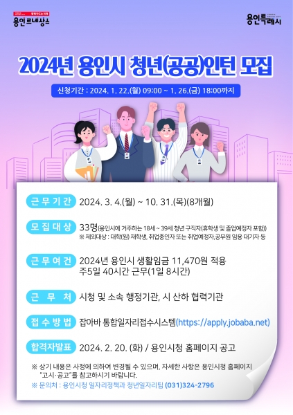 용인특례시, 공공분야 일자리 찾는 청년인턴 33명 모집