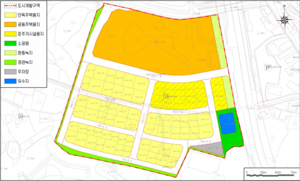 총사업비 약 189억원으로 계획인구는 1,208명, 465세대이며 도시가스, 도로 한전지중화, 상하수도 관로 통신 등 기반시설의 설치를 완료해 향후 건축 공사 시 불필요한 도로 굴착 방지 및 건축비용을 절감할 수 있도록 했다.
