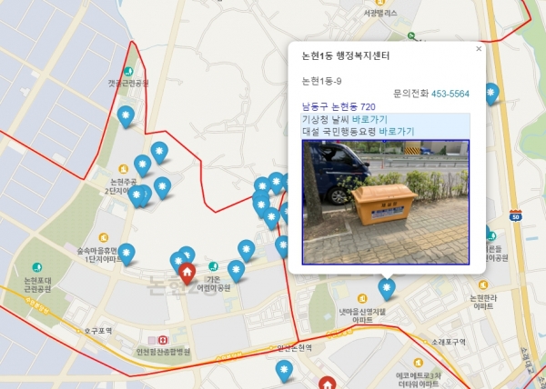 남동구청 홈페이지 메인화면의 ‘스마트위치정보지도’를 통해 확인할 수 있다.