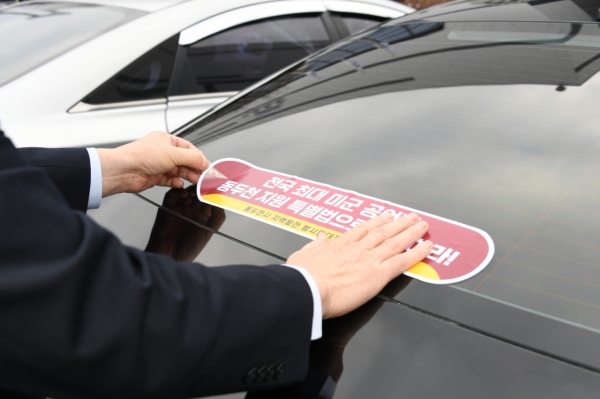 첫 스티커는 박형덕 동두천시장과 김승호 동두천시의회의장, 심우현 범대위원장 차량에 부착하는 것으로 시작했으며 이어 공무차량과 택시, 버스 등 운수 차량과 사회단체원, 시민 등에 배부하고 부착해 현안 사업에 대해 시민 염원과 의지를 결집할 예정이다.