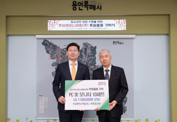 [금요저널] 주성엔지니어링은 지난 4일 용인시 청소년의 성장을 위해 컴퓨터 10대를 용인시 청소년미래재단에 전달했다.