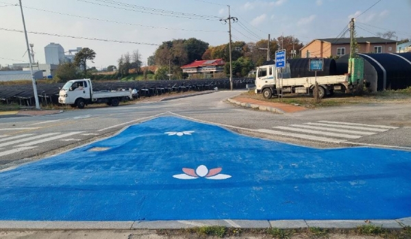 또한 보행로를 설성면을 대표하는 꽃인 “연꽃”디자인 패턴과 색채 이미지가 적용된 도막형 바닥재로 포장해 자동차들이 서행할 수 있도록 유도하고 도로 전반 분위기를 차량보다 보행자가 우선인 환경으로 조성했다.