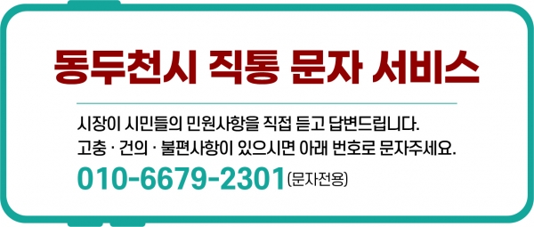 지난해 운영을 시작한 ‘동두천시장 직통 문자 서비스’는 별도의 절차를 거칠 필요 없이 시장과 시민이 편안하게 소통할 수 있는 대화채널이다.