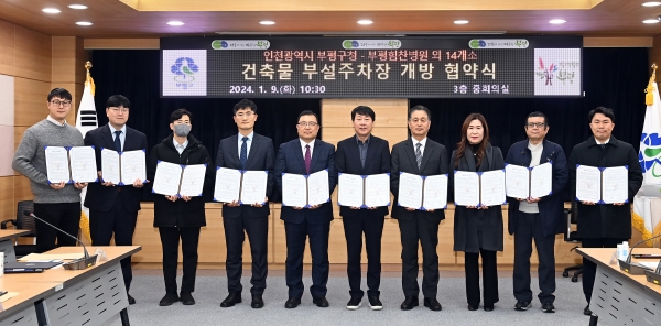 [금요저널] 부평구는 9일 부평힘찬병원 등 15개 시설과 총 664면 규모의 부설주차장 개방을 위한 협약을 체결했다.