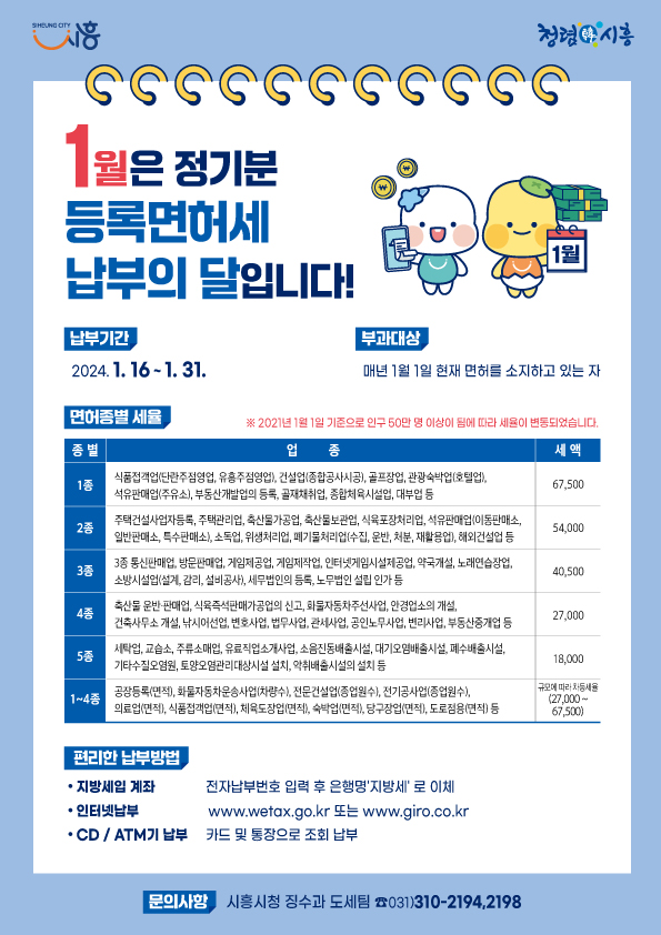 [금요저널] 시흥시가 2024년 등록면허세 5만6천822건, 24억6천4백만원을 부과 고지했다고 지난 9일 밝혔다.