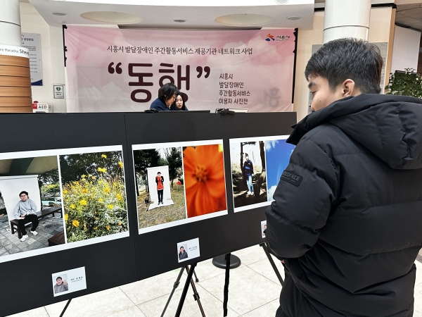 [금요저널] 시흥시는 지난 9일 시청 1층 민원실 로비에서 ‘발달장애인 주간활동 서비스’ 이용자가 펼치는 사진전 ‘동행’을 개최했다.