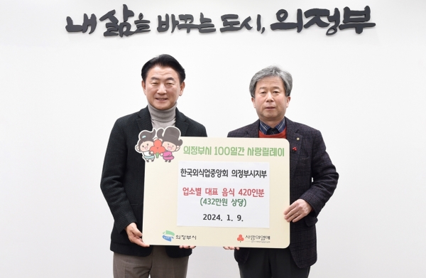 [금요저널] 의정부시는 1월 9일 한국외식업중앙회 의정부시지부가 저소득층을 위한 업소별 대표 음식 420인분을 전달했다고 밝혔다.