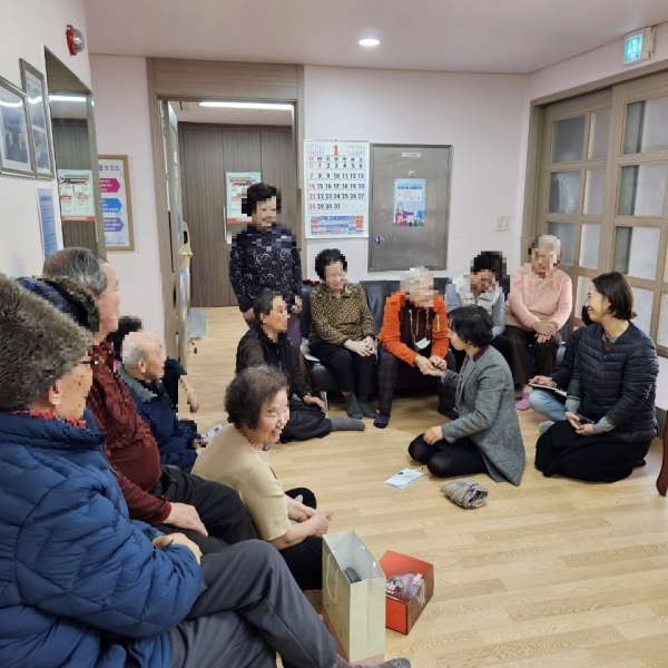 동장과 직원들이 경로당 어르신들의 안부를 살피고 올해 시작하는 보건복지서비스 사업 안내와 참여를 독려했다.