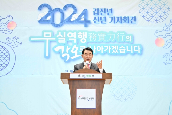 [금요저널] “務實力行 말이나 이론보다는 행동과 실천으로 성과를 이뤄내 포천시민이 ‘더 큰 행복’을 느낄 수 있는 시정을 구현해 내겠습니다”백영현 포천시장은 지난 10일 시청 대회의실에서 2024 신년 기자회견을 개최해 2023년 시정 성과를 공유하고 2024년 한 해 동안의 주요 핵심 7대 사업에 대해 설명하는 시간을 가졌다.