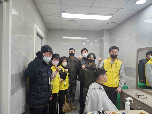 이날 지역사회보장협의체 위원들은 입원치료로 외출이 힘든 국군 장병들을 위해 미용봉사에 나섰으며 앞으로도 매월 정기적으로 국군 장병들에게 미용봉사를 실천할 예정이다.