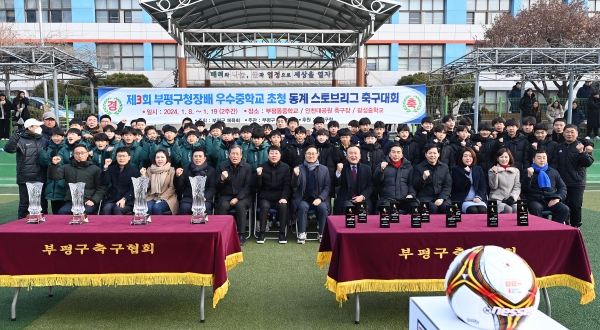 [금요저널] 부평구는 11일 부평동중학교 축구경기장에서 ‘제3회 부평구청장배 전국 우수중학교 동계 스토브리그 축구대회’ 개회식을 열었다.