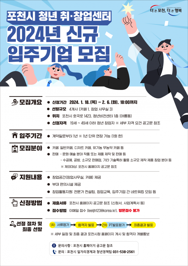 포천시 청년 취·창업센터, 2024년 신규 입주기업 모집