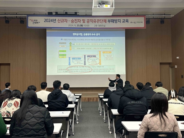 [금요저널] 포천시는 지난 23일 포천시청 대회의실에서 공직에 입문한 신규자, 승진자, 공직유관단체 직원 등 약 100명을 대상으로 2024년도 첫 부패방지 청렴 교육을 실시했다.