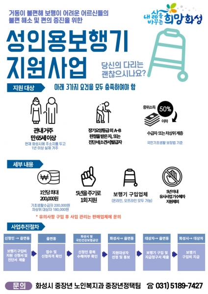 화성시, 2024년 노인 보청기·성인용 보행기 지원 대상자 모집