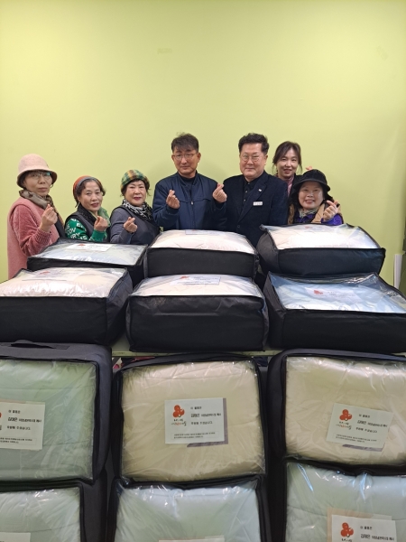 [금요저널] 율면 행정복지센터는 25일 김태은 본죽1리장이 취약계층 가구에 전달해 달라며 극세사 이불 26채를 기탁했다고 밝혔다.