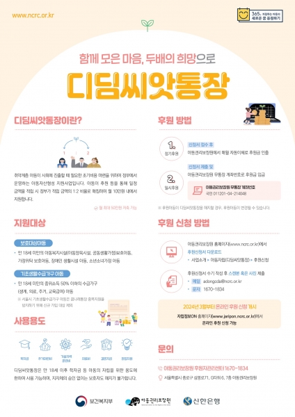 디딤씨앗통장은 취약계층 아동이 0~18세까지 216개월간 매달 5만원을 적립하면 정부가 매달 10만원을 더 적립해준다.
