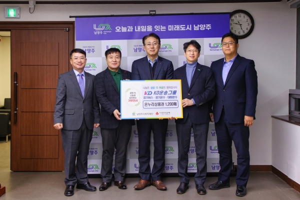 KD운송그룹이 후원한 온누리상품권은 남양주시복지재단을 통해 지역 내 소년 소녀 가장, 독거노인 등 취약계층에 전달될 계획이다.