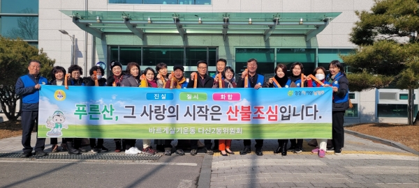 이날 활동에는 바르게살기운동 남양주시협의회 다산2동위원회 회원 20명을 비롯해 다산2동장 등 동사무소 직원들이 참여해 황금산 산책로를 중심으로 나무에 산불 조심 리본을 달았으며 황금산을 방문한 시민들에게 산불 예방 및 우측통행에 동참해 줄 것을 당부했다.