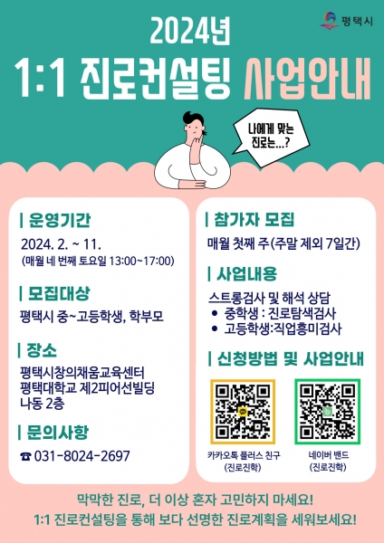 [금요저널] 평택시가 지역 내 청소년들의 진로 탐색 및 맞춤형 진로 설계를 위해 2024년도 1:1 맞춤형 진로컨설팅을 운영한다.