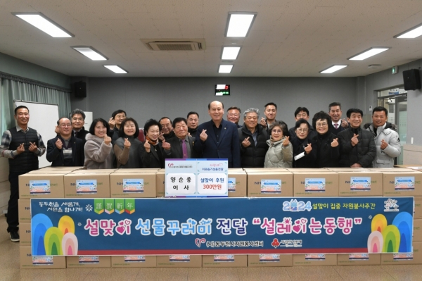 한편 설맞이 선물꾸러미 100개는 자원봉사센터 양순종 이사가 설을 맞이해 어려운 이웃을 위해 300만원을 사회복지공동모금회에 지정기탁한 배분사업비로 준비했으며 관내 8개동 행정복지센터에 배분해 선정된 대상자 100명에게 설 명절 전에 전달할 계획이다.