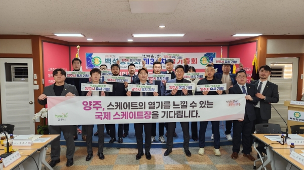 이날 참석자 전원은 양주시의 유치를 위한 간절한 염원을 담아‘국제스케이트장은 양주시로’라는 구호를 제창했다.