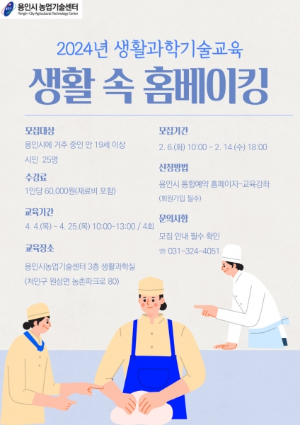 교육은 3월 7일부터 28일까지 처인구 원삼면 농업기술센터 생활과학실습실에서 진행된다.