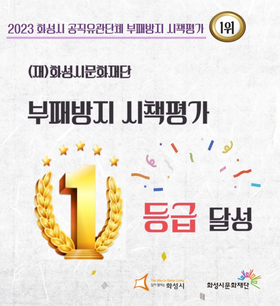 [금요저널] 화성시문화재단은 2023년 화성시 공직유관단체 부패방지 시책평가에서 1등급을 받았다.