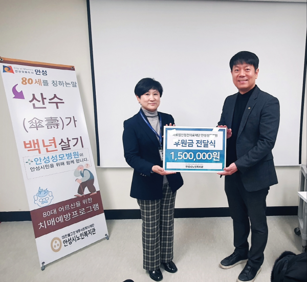 [금요저널] 안성시노인복지관은 청천의료재단 안성성모병원으로부터 건강생활증진 프로그램 사업비 후원금을 전달받았다고 30일 밝혔다.