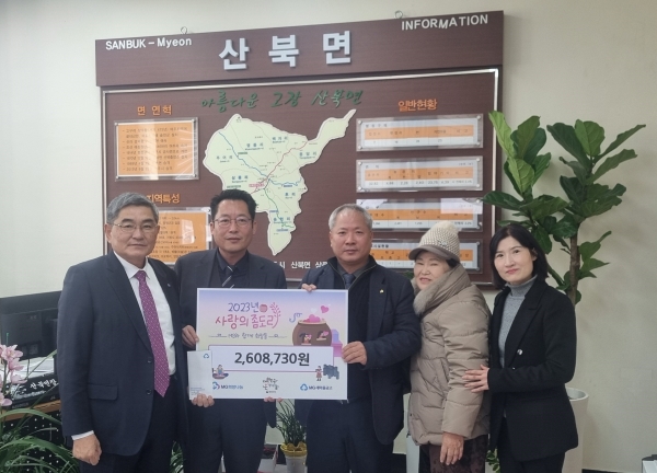 전근재 산북면장은 “지역 금융의 버팀목 새마을금고에서 지역 주민을 위해 나눔을 실천해주셔서 감사드린다”며 “후원금은 공동모금회를 통해 지역의 어려운 이웃을 위해 사용하겠다”고 전했다.