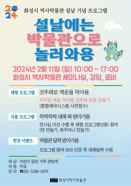 [금요저널] 화성시 역사박물관이 설 명절 다음날인 11일 설날 문화 프로그램 ‘설날에는 박물관으로 놀러와용’을 운영한다.