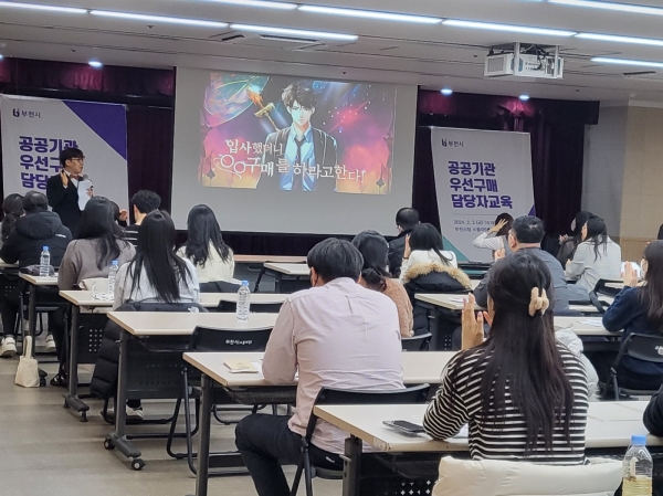 [금요저널] 부천시는 지난 2일 부천시청 소통마당에서 부천시 공무원과 산하기관 구매 담당 직원을 대상으로 시민가치기업 제품 우선구매 담당자 교육을 개최했다고 밝혔다.