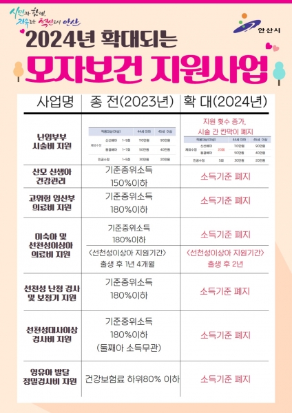 [금요저널] 안산시가 심각한 저출생 문제에 대응하고 감소하는 출산율을 제고하기 위해 올해부터 모자보건 지원사업을 확대한다.