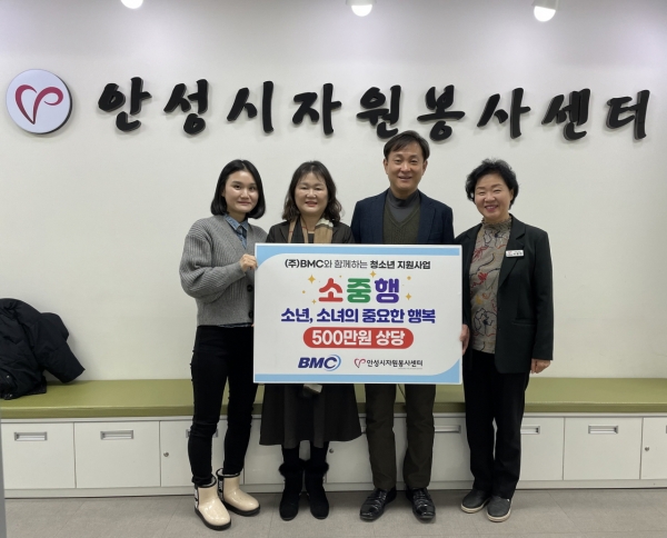 이날 참석한 ㈜BMC 관리팀 김정례 이사는 "이번 지원을 통해 미래 자산인 청소년들이 건강하게 성장하길 바란다”며 "앞으로도 취약계층을 위한 다양한 나눔 활동을 이어나갈 계획이다”고 전했다.