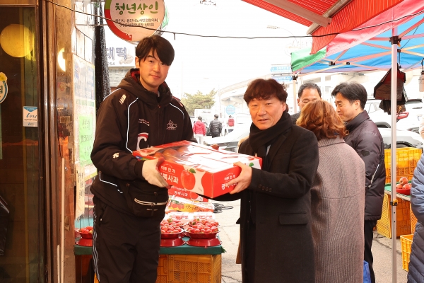 의원들은 시장 내 점포를 돌면서 과일 떡, 생필품 등을 구입했고 시장 상인들에게 설 명절 인사를 전하면서 상인들의 목소리를 청취했다.